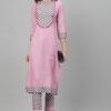 Pink Color Screen Print Straight Kurta